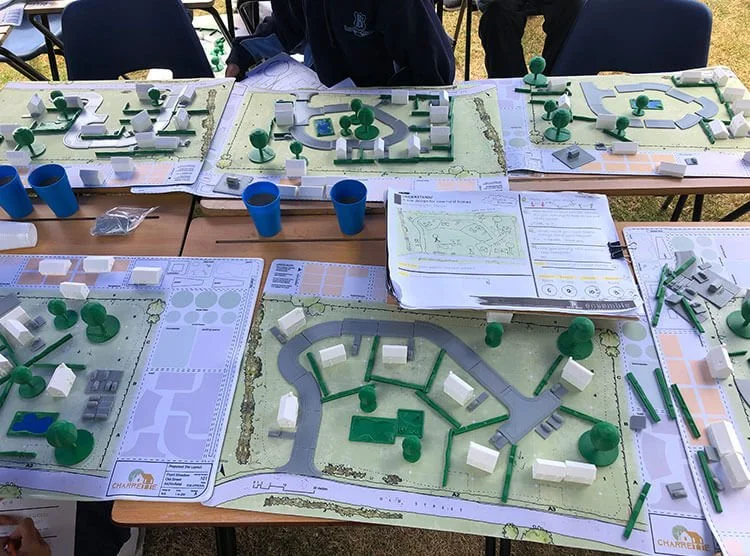 Module 1b focuses on placemaking and challenges students to take on the role of architect! They are given a client, a brief, and a blank field and tasked with creating the most successful new place to live. Using Ensemble’s innovative Charrette™ architecture game, students will create a physical 3D design for a client, and learn to work with a design brief.